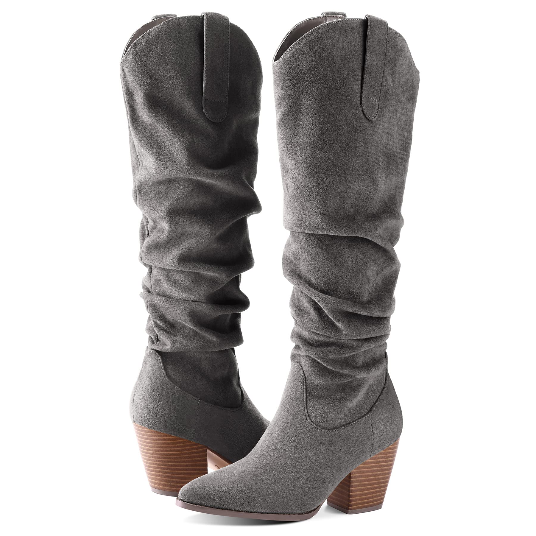 mysoft Women's Cowboy Knee-High Boots Pointed Toe Mid Chunky Heel Pull On Slouchy Boots with Zippers