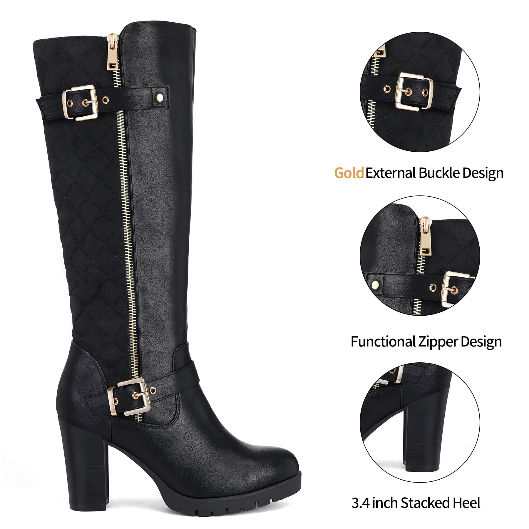 - Comfortable Materials: With a combination of PU and suede, these high heel boots are soft, comfortable and warm through autumn and winter