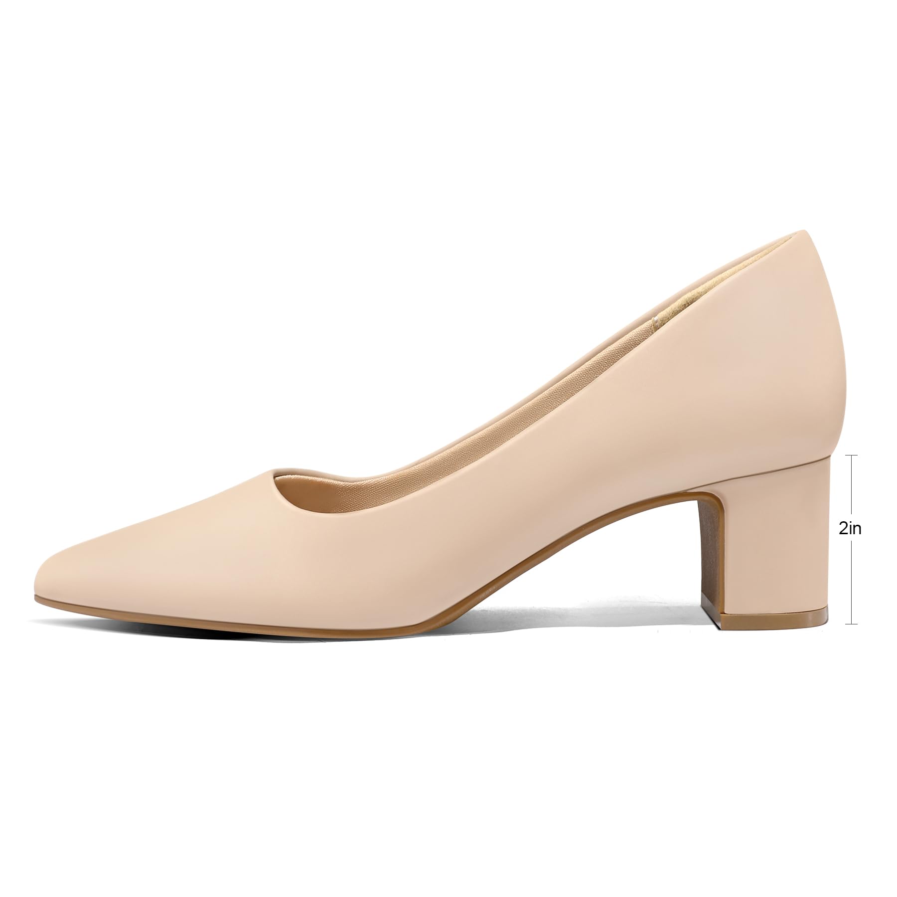 mysoft Women's Pointed Toe Pumps 2 Inch Chunky Block Low Heels Dressy Shoes Slip On Pumps