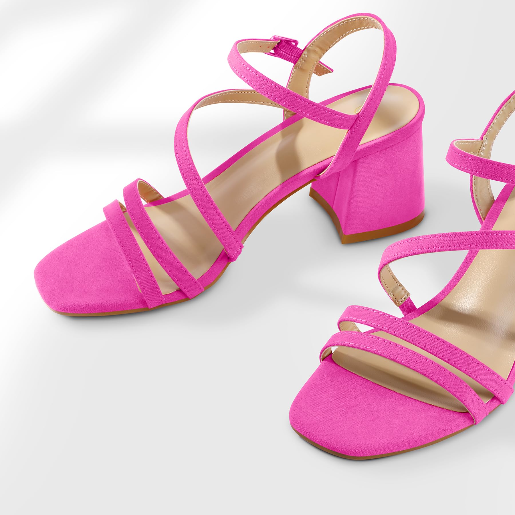 - Multi-Strip Design: Individualized and fashionable low block heeled shoes, the straps on the upper embellish your feet, the chic slingback design, and the buckle design is equipped with an elastic belt to adjust the tightness. Fashion open-toe style provides comfortable foot space when you walk