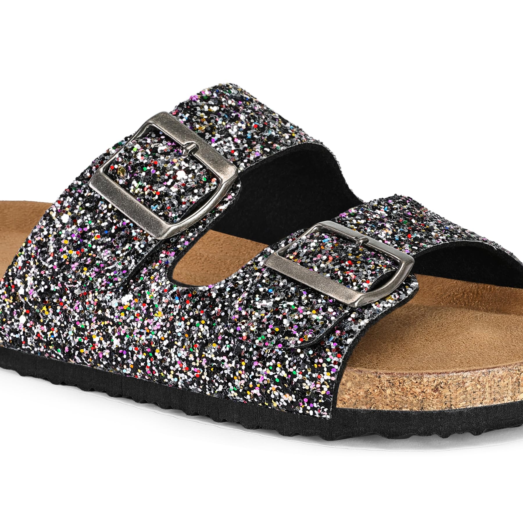 mysoft Womens Flat Sandals Cork Footbed Slides 2 Straps Adjustable Buckle Slip On Summer with +Comfort Shoes